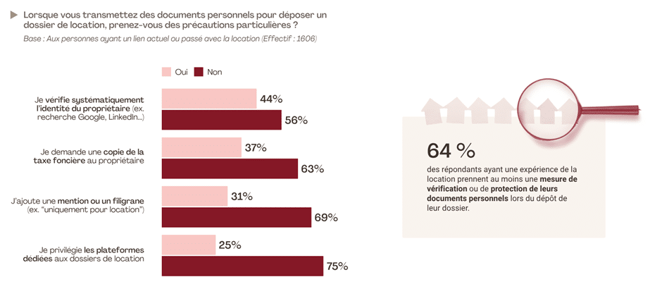 Dans un environnement numérique propice aux arnaques, la protection des données personnelles lors du dépôt d’un dossier de location reste pourtant loin d’être systématique. Parmi celles et ceux ayant une expérience de la location, seuls 44 % affirment vérifier systématiquement l’identité du propriétaire, en s’appuyant notamment sur des recherches en ligne. Un peu plus d’un tiers demandent à voir des justificatifs tels qu’une copie de la taxe foncière, tandis que 31 % prennent la peine d’ajouter une mention de type « uniquement pour location » sur les documents transmis. Un quart des répondants (25 %) privilégient les plateformes spécialisées comme Zelok, qui conjuguent praticité et sécurité. Si la majorité des répondants prennent au moins une mesure de précaution, une large part continue donc de transmettre des informations sensibles sans filet, au risque de voir leur dossier détourné ou exploité à des fins frauduleuses.